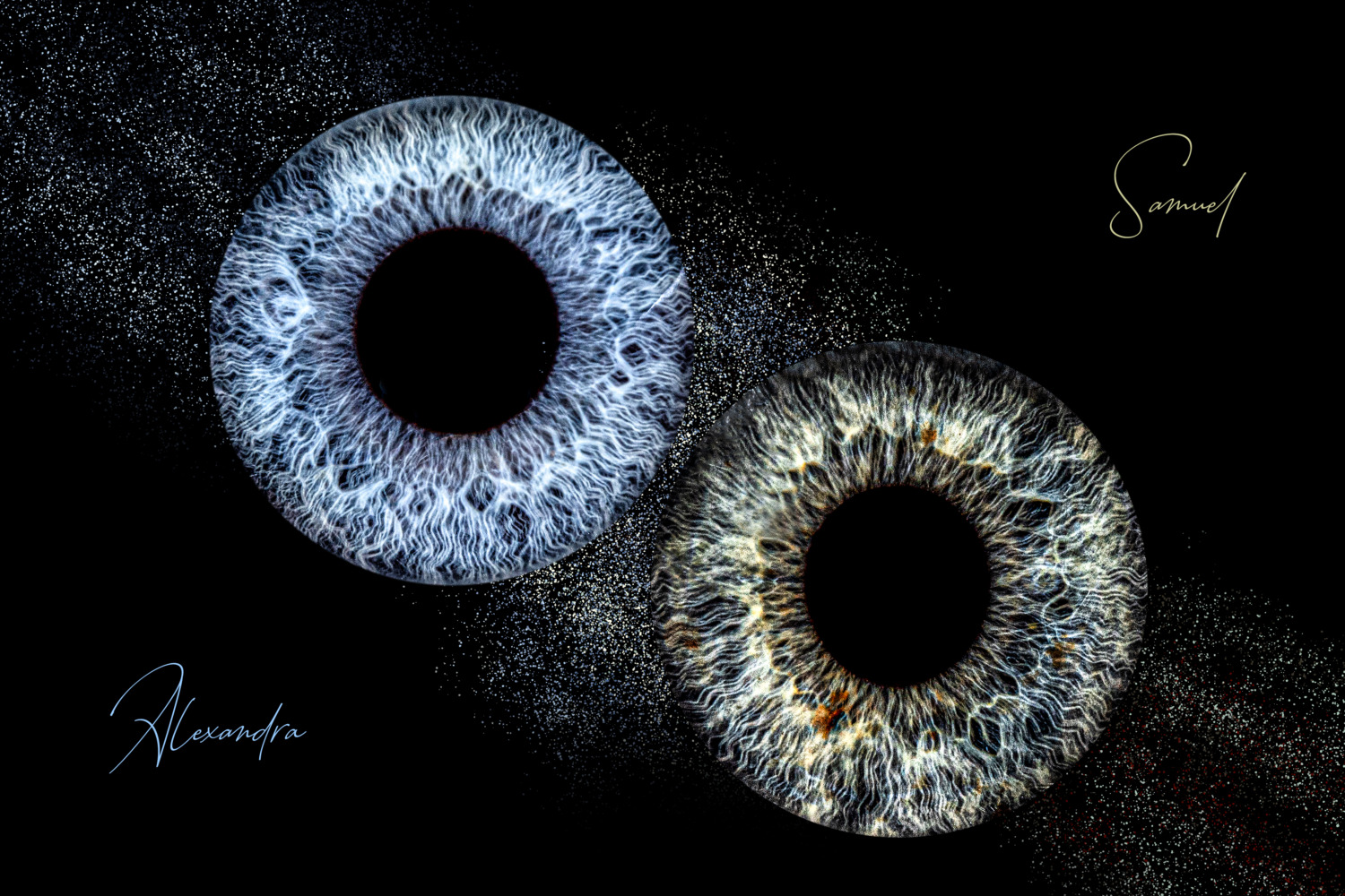 Jede Iris ist einzigartig, ein Kunstwerk aus Farben, Strukturen und Tiefe.
